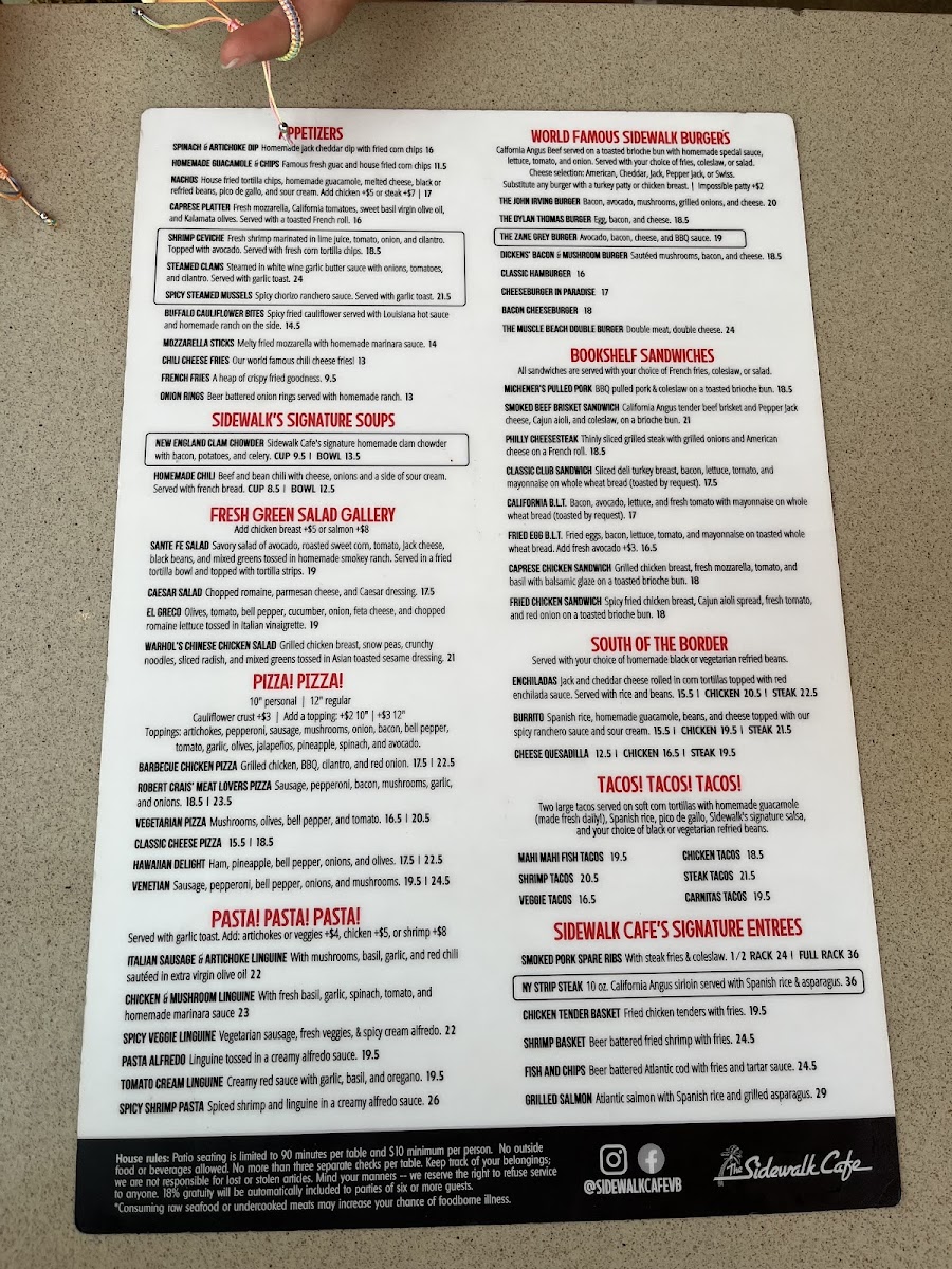 The food mirrors the laid-back beachfront vibe, delivering generous portions that balance comfort and flavor. Highlights include the Bacon Blue Cheese Burger, praised for its perfect juiciness and bold, smoky crunch. Guests appreciate the fresh, homemade guacamole alongside zesty cocktails like Bloody Marys and Micheladas. Whether it’s a casual lunch or a relaxed evening by the ocean, The Sidewalk Cafe’s menu satisfies with its timeless American dishes and vibrant, flavorful twists.
